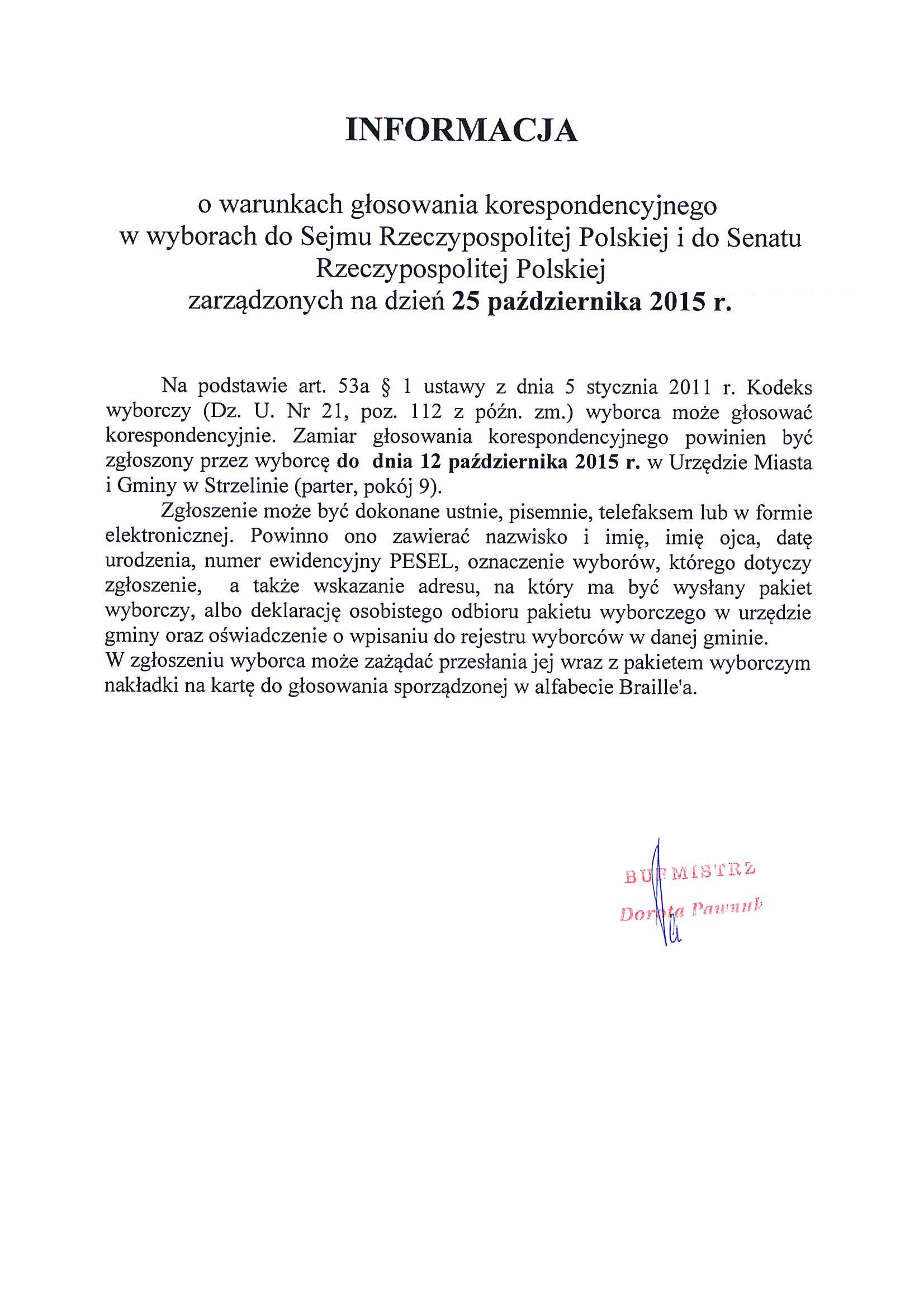 w wyborach do Sejmu Rzeczypospolitej Polskiej i do Senatu Rzeczypospolitej Polskiej, zarządzonych na dzień 25 października 2015 r.